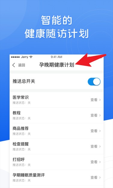 4、孕晚期健康计划页面提供医学知识、打招呼等内容,便于医生开展智能随访管理。