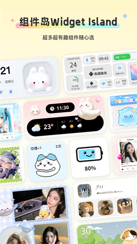 INS风、二次元、动漫、简介、可爱、创意等多种风格,还提供太空人、简约线条、粉红少女主题风格组件,让组件岛成为你的贴心桌面小管家。