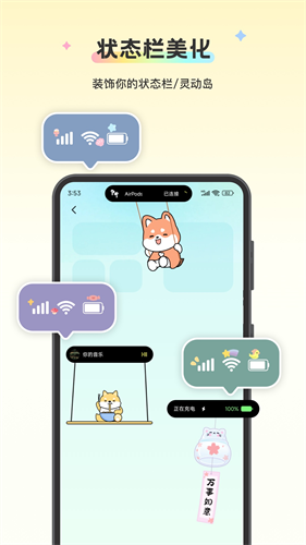 2、状态栏美化:为你的状态栏添加炫酷贴纸。