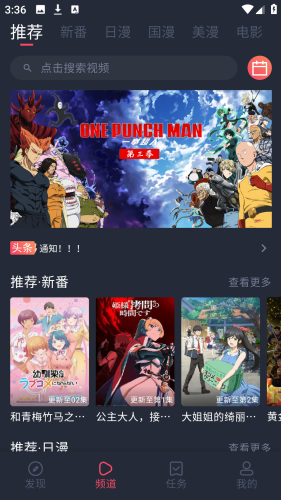 6、方便知晓当下最新的,热门推荐模块呈现最新最热的番剧,正在热播动漫。