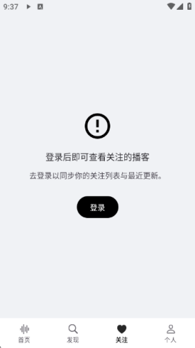 6、关注播客(需登录):进入“关注”页面,点击“登录”后可查看并管理关注的播客。