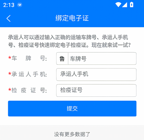 4、你还可以绑定电子证,输入车牌号、手机号以及检疫证号即可。