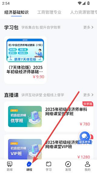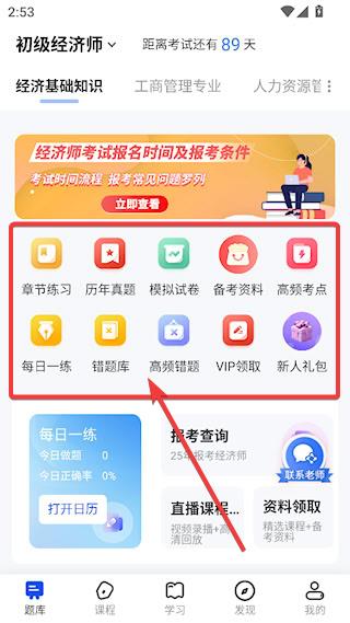 1、下载安装后点击进入经济师考试题库APP,选择课程