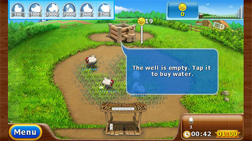 4、点击水井可以获取水源,可用来让草更快成长,但每次需要消耗硬币