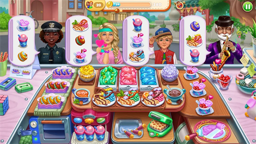 6、购买您自己的咖啡馆并开始做蛋糕狂。制作蛋糕,煎饼,糖果,冰淇淋cream,奶昔和其他甜点。释放您的创造力,并混合不同的配料以创造独特的糖果!选择任何您想做成最美丽蛋糕的糖霜。