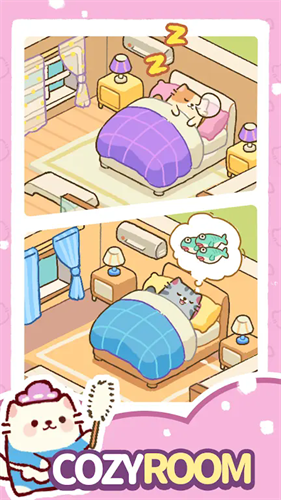 3、不断扩展旅馆规模,解锁新的房间、设施和装饰,打造最完美的猫咪之家。