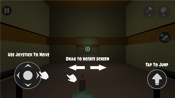 3、玩家点击屏幕可以选择你想要的视角,点击方向虚拟键盘可以控制角色方向,点击向上按钮可以跳跃。