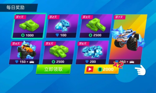 1、每日奖励丰富,进入到车库获取更高级的怪物卡车,然后来一场竞速与特技的挑战。