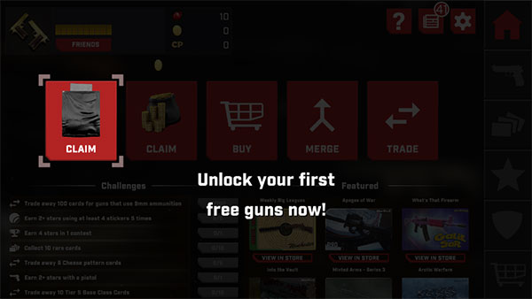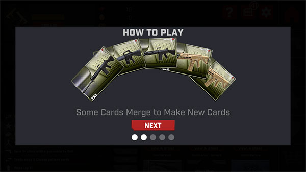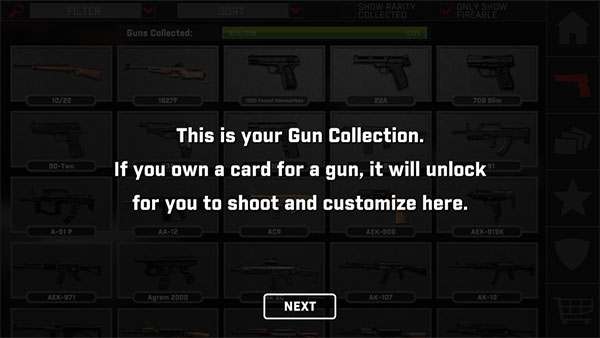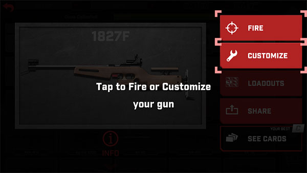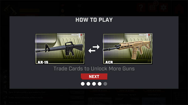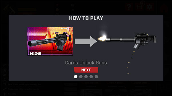 1、从本站下载游戏,进入游戏开始有新手教程,使用卡片即可解锁目标枪支。
