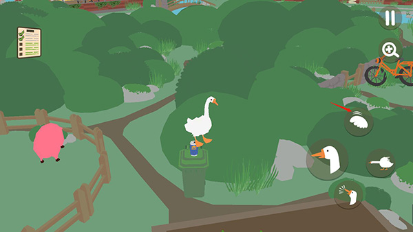 大鹅模拟器手机版双人联机版是一款轻松向的趣味模拟游戏,游戏没有战斗与竞争的压力,只有在一处美丽农场中随心所欲制造小混乱的自由与惬意。游戏将玩家带入一只普通大鹅的身体里,在一座宁静农场中展开令人捧腹的恶作剧之旅,在一个阳光明媚的早晨,你的任务就是打破这份宁静,扮演那只让人类头疼不已的捣蛋大鹅。游戏的核心乐趣在于利用大鹅简单的动作,啄、拖、叫、扇翅膀,去精心策划并实施一系列令人啼笑皆非的混乱。在大鹅模拟器手机版双人联机版游戏里你可以选择严格按照列表去完成偷钥匙、藏工具、启动洒水器等恶作剧挑战,也可以完全无视目标,只是追着人类跑,把他吓得落荒而逃,或是把院子里的物品丢得到处都是,享受纯粹搞破坏的乐趣。逼真又滑稽的物理引擎会让每一个互动都产生意想不到的搞笑效果,而人类角色夸张无奈的反应更是点睛之笔。无论是想短暂放松几分钟,还是想沉浸在一个简单快乐的世界里,这款游戏都能提供温暖又充满笑声的陪伴。