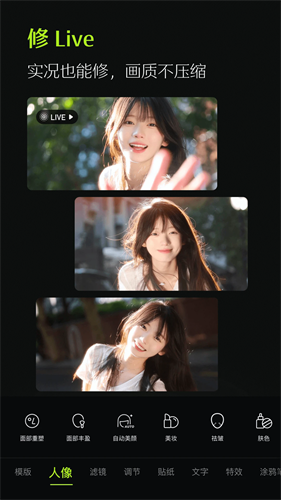 4、丰富素材:提供海量的滤镜、贴纸、模板等素材,激发用户的个性化创作灵感。