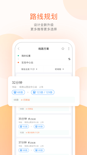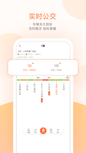 2、实时公交站牌:车来了车到哪了?公交车还有几分钟到?公交车还有多远?公交实时情况轻松掌握,还可预设响铃提醒。
