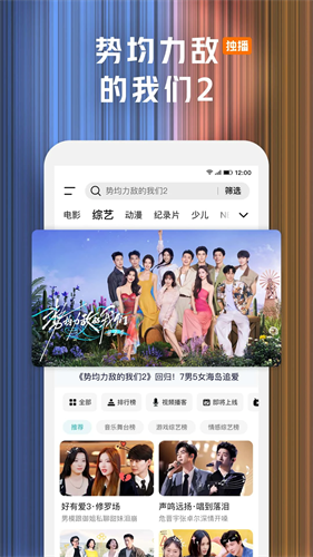 2、内容丰富:最新最热电影、电视剧、综艺、直播可全覆盖。