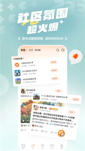 - 游戏圈:每个游戏都有自带的游戏互动圈,让你找到志同道合的朋友。