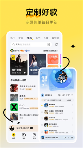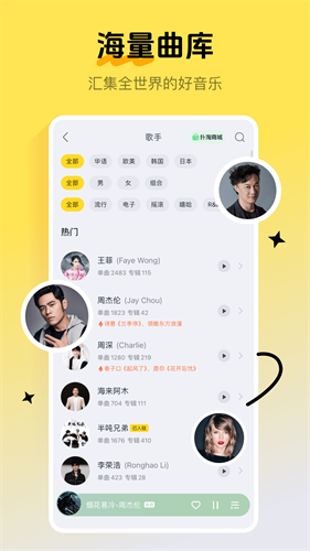 2、最大最全曲库,热歌新歌想听就听,多重音质选择,无损品质享受,智能切换,听歌电话两不误。