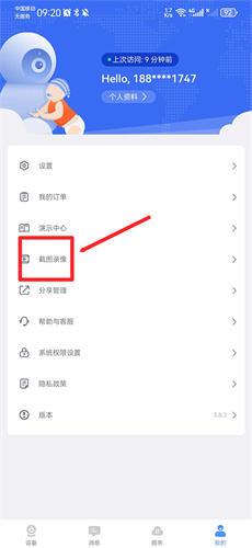 1、在app我的界面中点击截图录像。