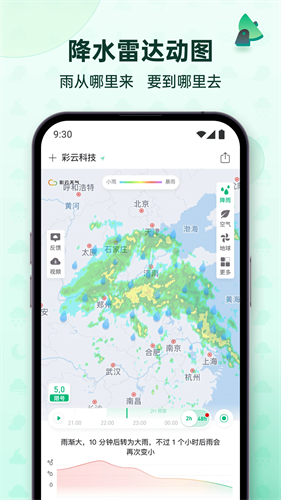 权威专业气象雷达外推图,运动趋势、雨量大小一眼即知。