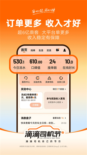 滴滴司机6.0.6正版安卓版是一款为司机群体服务的手机应用,它整合了从注册、接单到安全保障、车险金融及车主服务等全链路功能,司机朋友可通过它免费入驻滴滴平台,灵活选择网约车、出租车、甚至是豪华车专职司机等多种接单模式,自由规划工作时间,多劳多得。滴滴司机6.0.6正版安卓版不仅配备有一键报警、紧急联系人联动等基础防护,更有行程录音、实时位置保护、医疗急救等深度保障功能,全程为司机保驾护航,让出车更安心。不仅如此,这款应用还面向司机推出十分完善的车险服务,套餐丰富价格实惠,线上理赔省心高效,再也不用来回跑线下递交材料。总之,无论是刚入行的新手司机,还是资深全职车主,用了它都可以更安全、更省心地接单赚钱。感兴趣的用户快来下载使用吧。