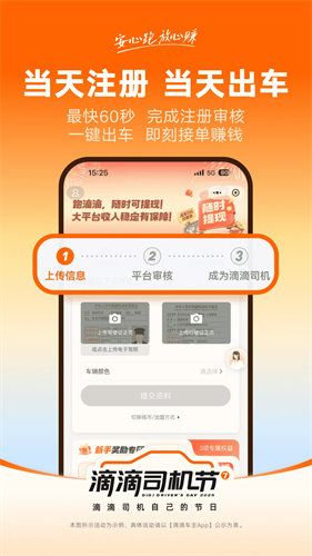 1、一键注册认证功能可快速提交资料并免费加入滴滴平台。
