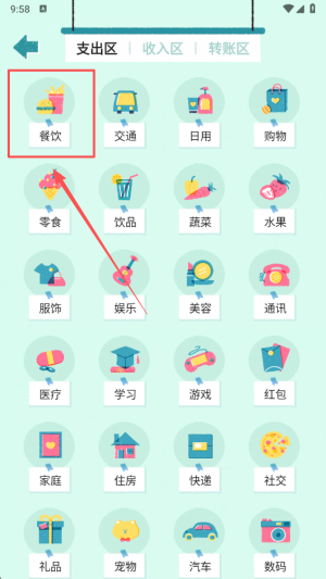 3、从列表中选择适当的支出类目,让记录更加精准和有条理。