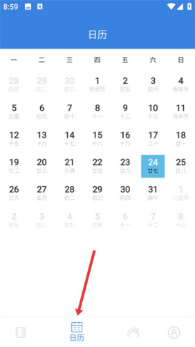 3、在全能记事本中切换到日历界面,能查看日期,还有节日节气标注,底部日历按钮可切换到此页面。