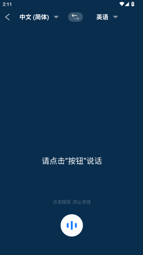 3、语音界面按住按钮说话翻译。