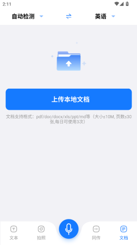 4、文档界面上传文档进行翻译。