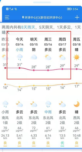3、超长时间,可以选择查看超长的时间段,半个月的天气预报都是能查看。