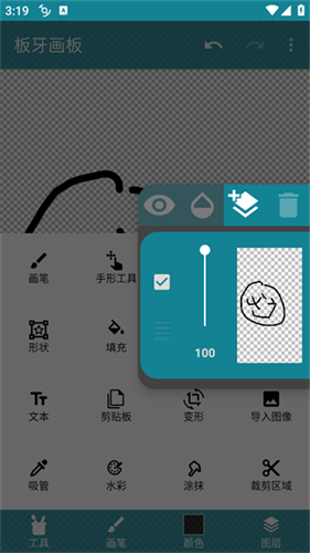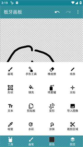 2、集成画笔、手型工具、橡皮擦、线条、形状、填充、喷雾器、光标、文本、图章、变形、导入图片等各种绘图工具