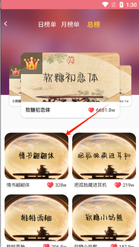2、这里的字体榜单分为日榜、月榜和总榜单