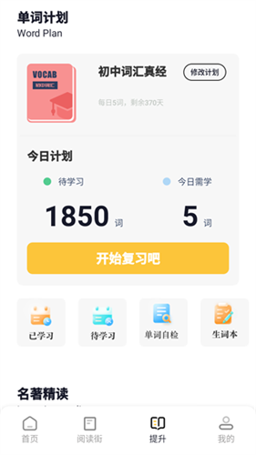6、 根据CEFR等级制定每日单词背诵与阅读目标,推送进度提醒。