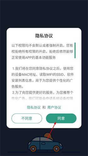 1、打开APP,在隐私协议界面,仔细阅读相关内容后,点击同意,进入APP主界面。