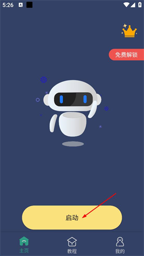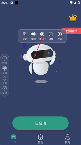 2、在APP主界面,点击启动按钮,进入自动化操作设置页面,可看到记录、录制、添加等功能选项。