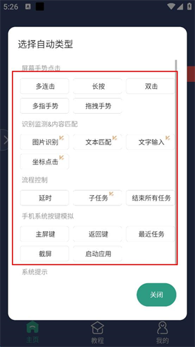 4、在选择自动类型页面,根据需求选择合适的自动类型,比如选择图片识别,然后按照提示进行后续的自动化操作设置,完成相关任务配置。