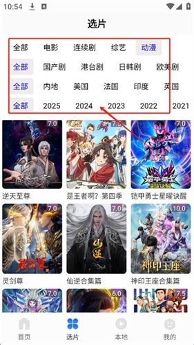 4、也可以在选片分类页面根据影视的类型、时间来选择。