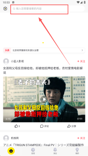 2、在页面顶部找到搜索栏位置,轻触该区域以激活文本输入功能。