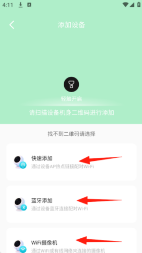 2、扫描设备二维码或者通过下方三个方式来进行添加绑定设备。