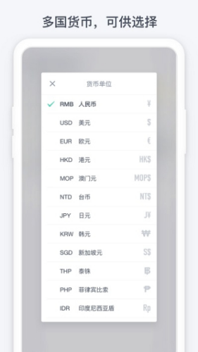 2、支持一个账本多种货币,让用户的记账更加的具有灵活性。