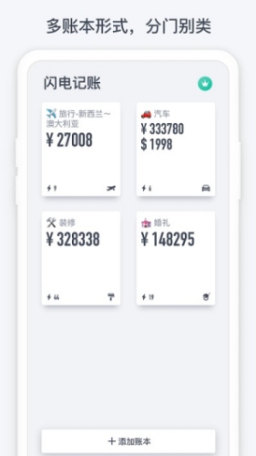 3、添加账本,为用户提供了添加功能,可自由的添加各种账本。