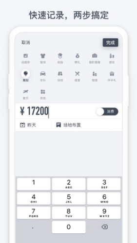 2、快速记录:没有繁琐步骤,每次两步搞定一笔消费。