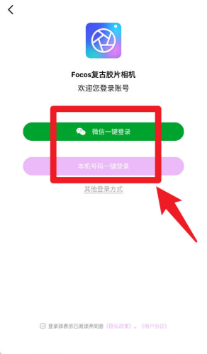 1、进入登录页面后可以选择微信一键登录或本机号码登录,快速完成注册与登录,方便用户直接进入相机功能体验。