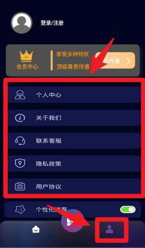5、在个人中心页面可以查看个人资料、联系客服、隐私政策和用户协议,保障使用过程安全可靠。