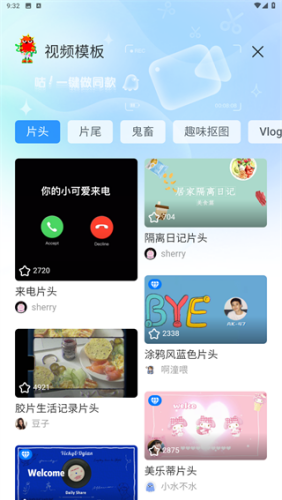 2、可以选择片头片尾或者鬼畜、抠图以及vlog等多种模版。