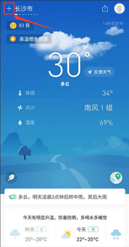 2、城市添加:实时查询全国各地的精准天气预报信息,并手动添加多个城市天气。