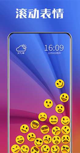 1、点击应用图标功能可以将应用显示出来,还可自由设置不同表情在桌面上滚动碰撞。