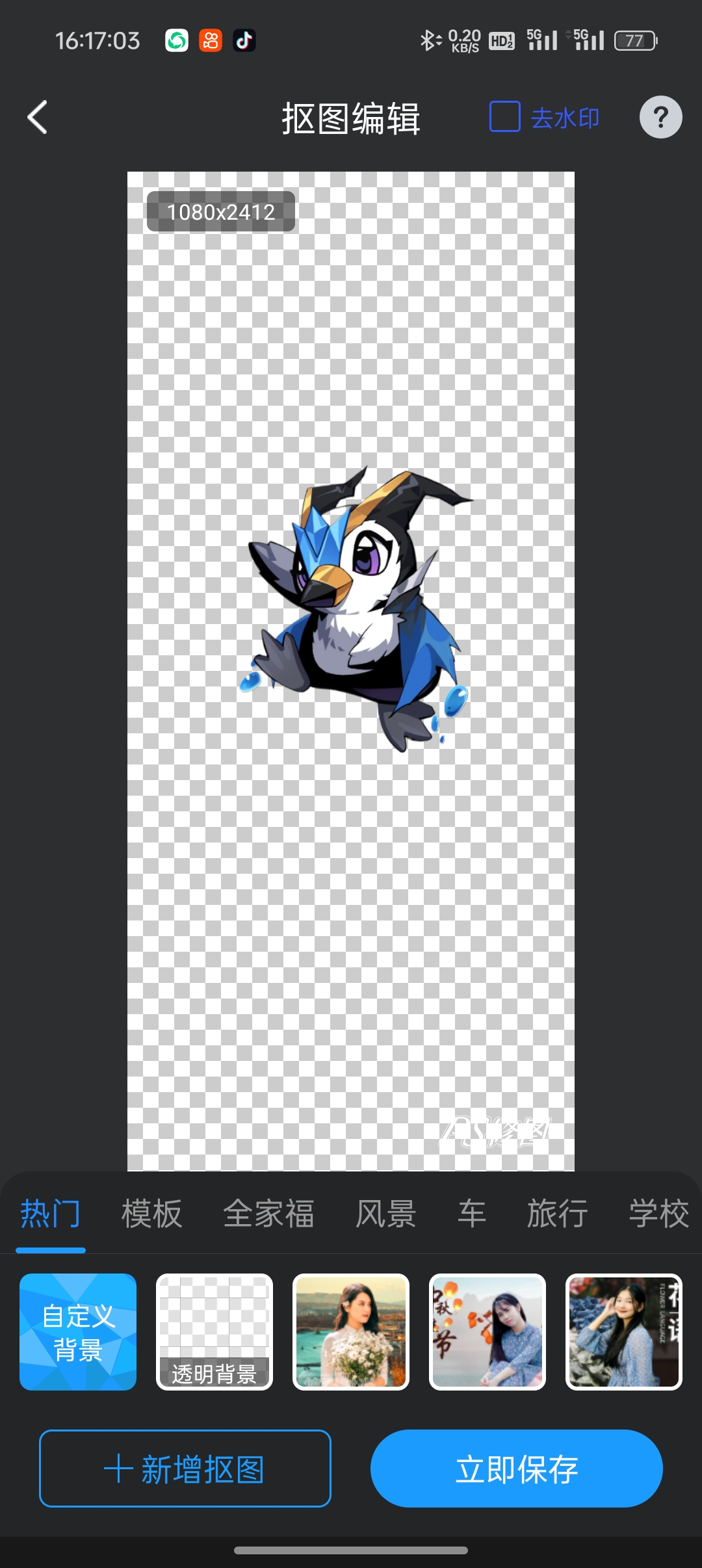4、抠图成功后点击保存即可