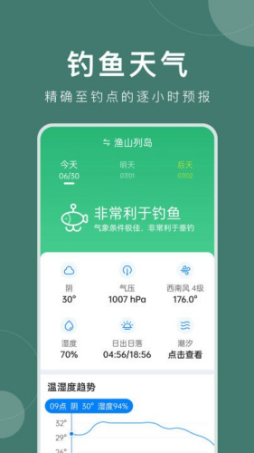 1、【钓鱼天气】全方位定制,钓鱼人专用天气。