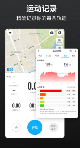 1、实时轨迹记录运动路线、速度、高度、配速等数据,支持断点续传。