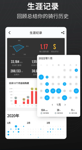 1、记录运动数据精准详尽,支持骑行、跑步和徒步。