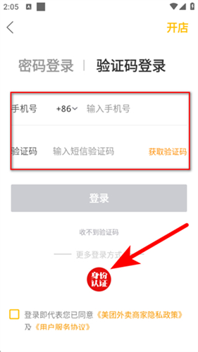 2、若选验证码登录,输入手机号、填写验证码,还可以选择身份核实登录。